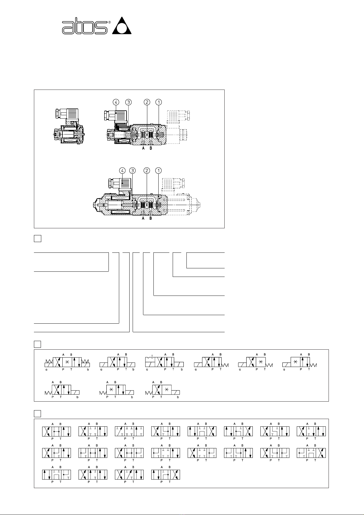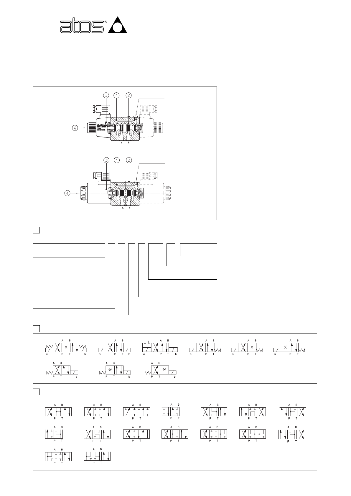 - золо ники ипов 0 и 3 могу пос авляю ся в исполнениях 0/1 и 3/1, при перекры ом соединении каналов с линией слива в цен ральной позиции.