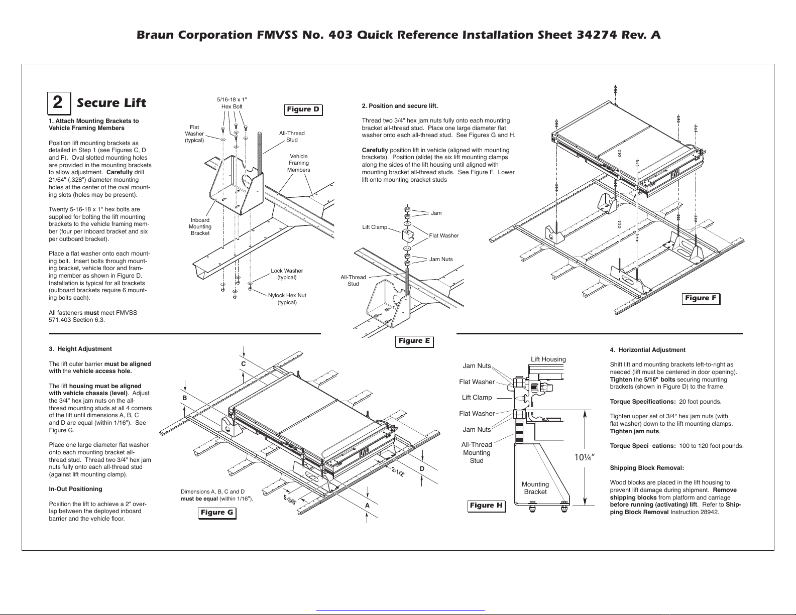 Braun Corporation FMVSS No. 403 Quick Reference Installation Sheet 34274 Rev. A