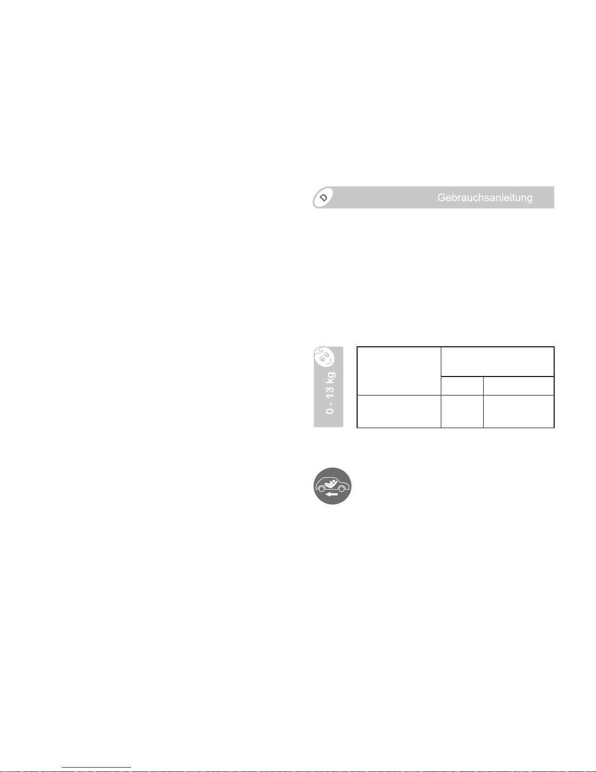 2.1 Rearward facing for children up to 13 kg.....12