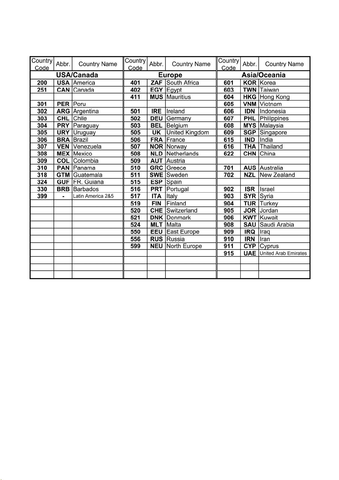 No. CODE NAME REMARKS No. CODE NAME REMARKS