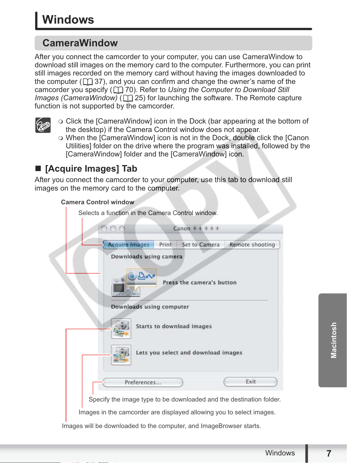 Using the Computer to Download Still Images (CameraWindow) ....................... 25