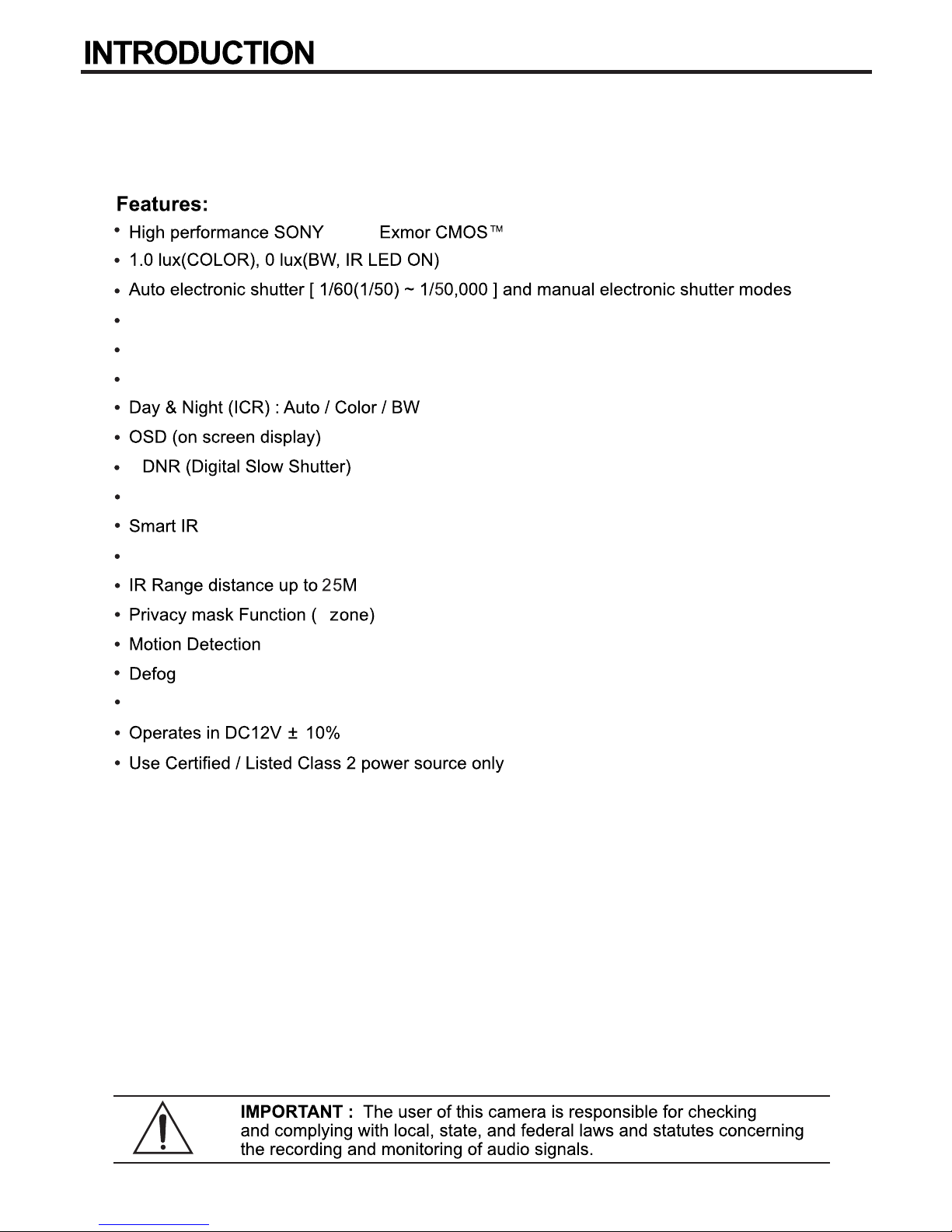 Comelit DOME CAMERA Manual de usuario