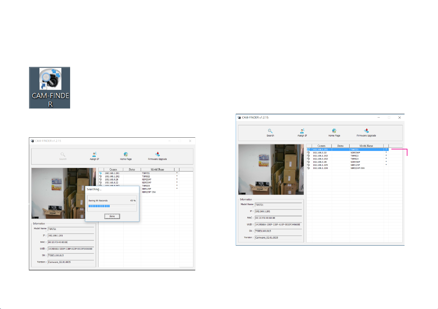 can also manually search cameras by clicking on the Search button.