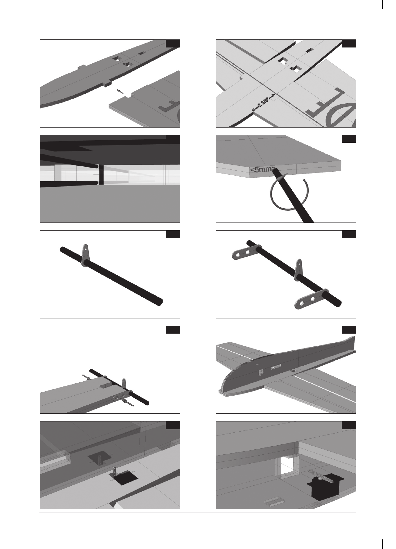 If you use other types of servos than the recommended ones, enlarge the servo cutouts,