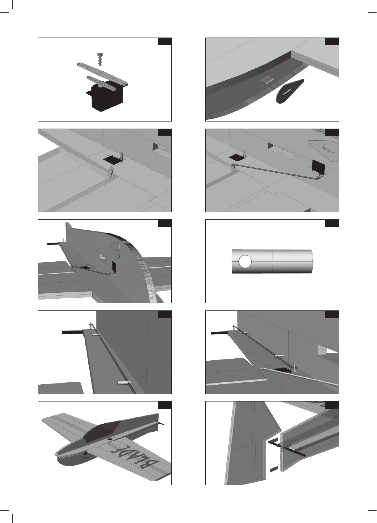 According to the fig. 13, glue the aileron control horns and install the push-pull rods (figs.