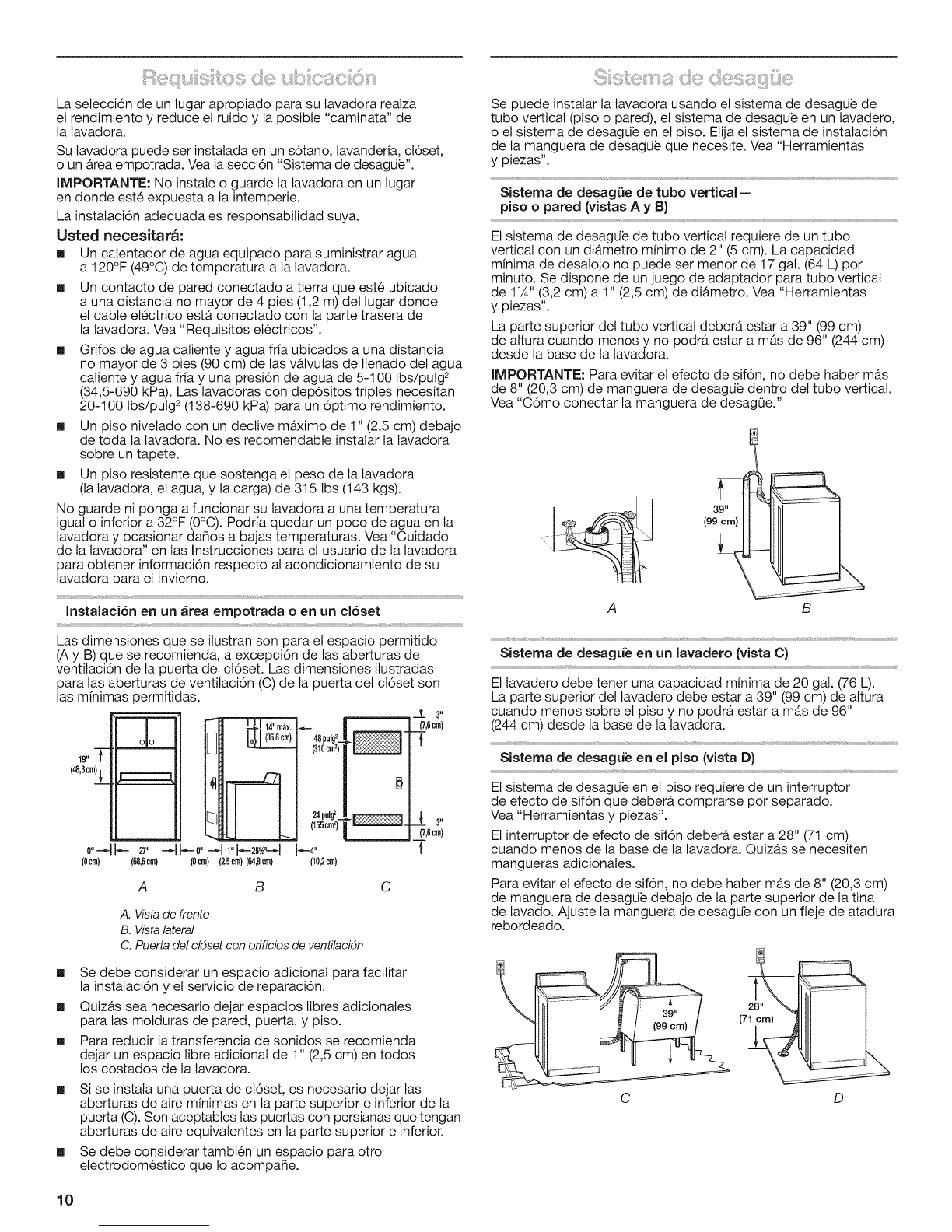 la lavadora. Vea "Requisitos electricos'.