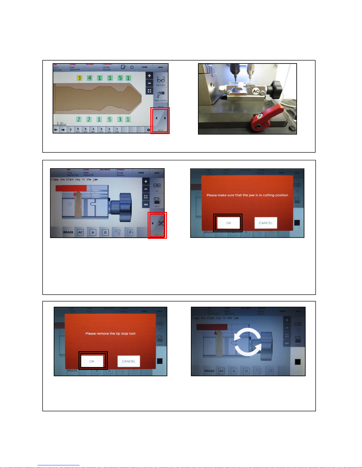 AC jaw in correct position, securing key on jaw, removing tip stop, etc) at one time, then
