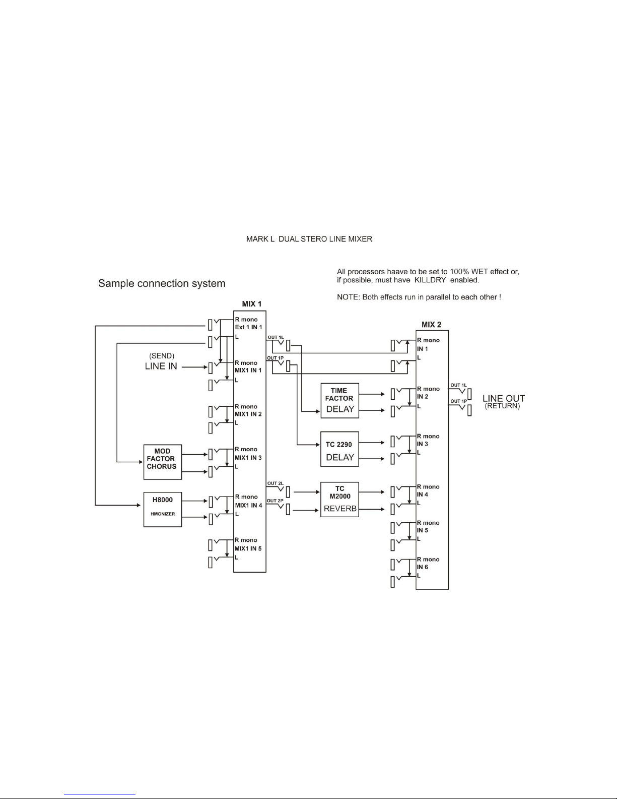 can then be connected to Mix 2 inputs. In this way you can have two stages of parallel