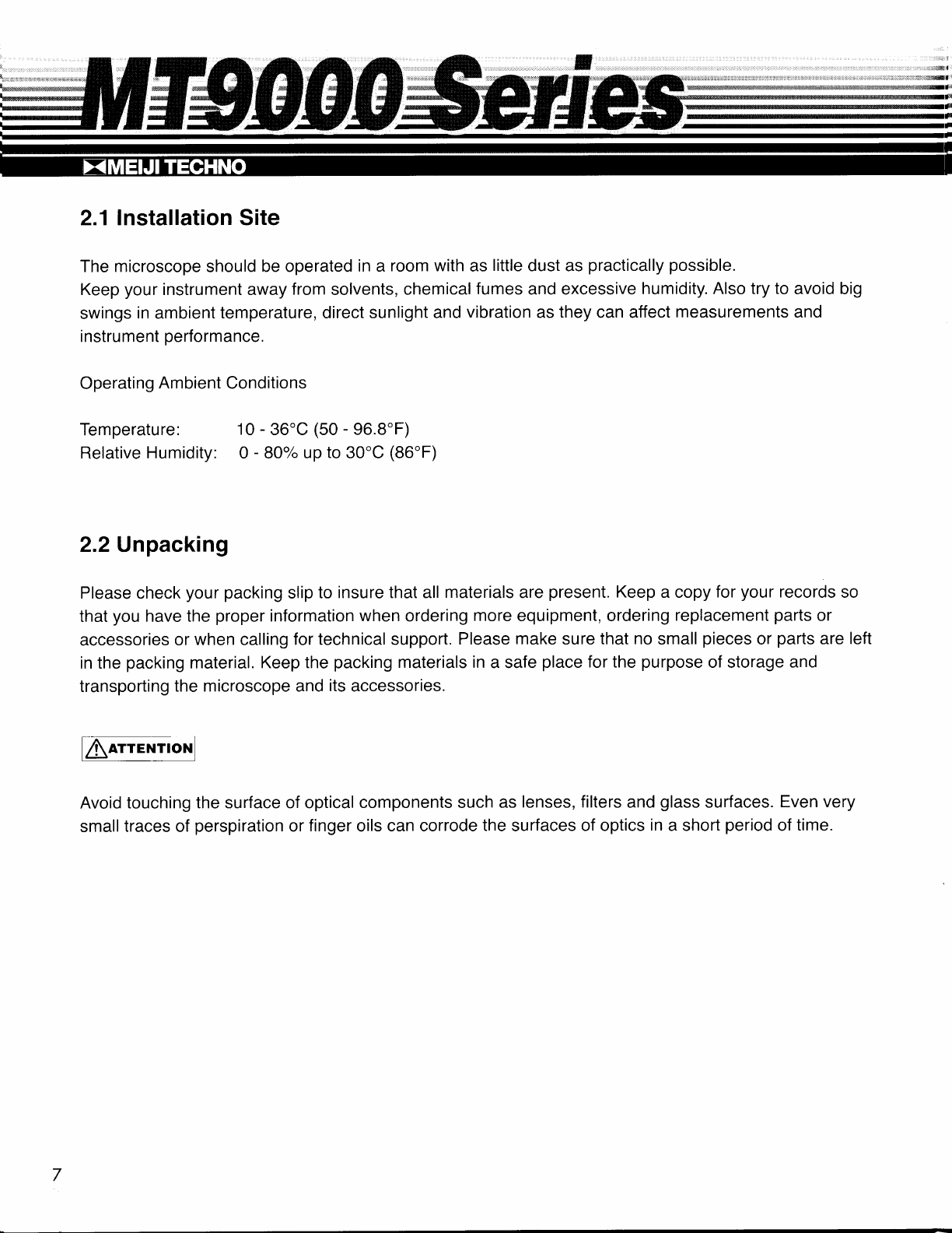Meiji Techno MT9000 Series Manual de usuario