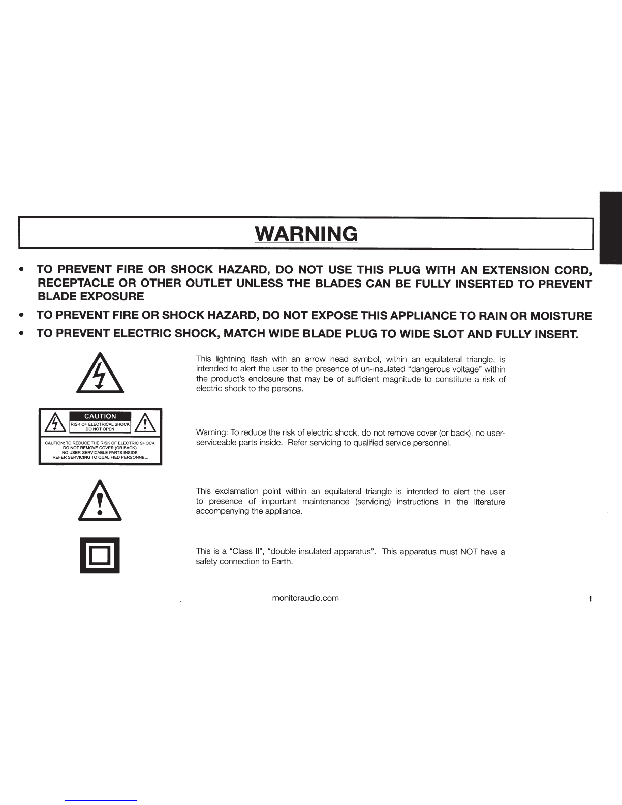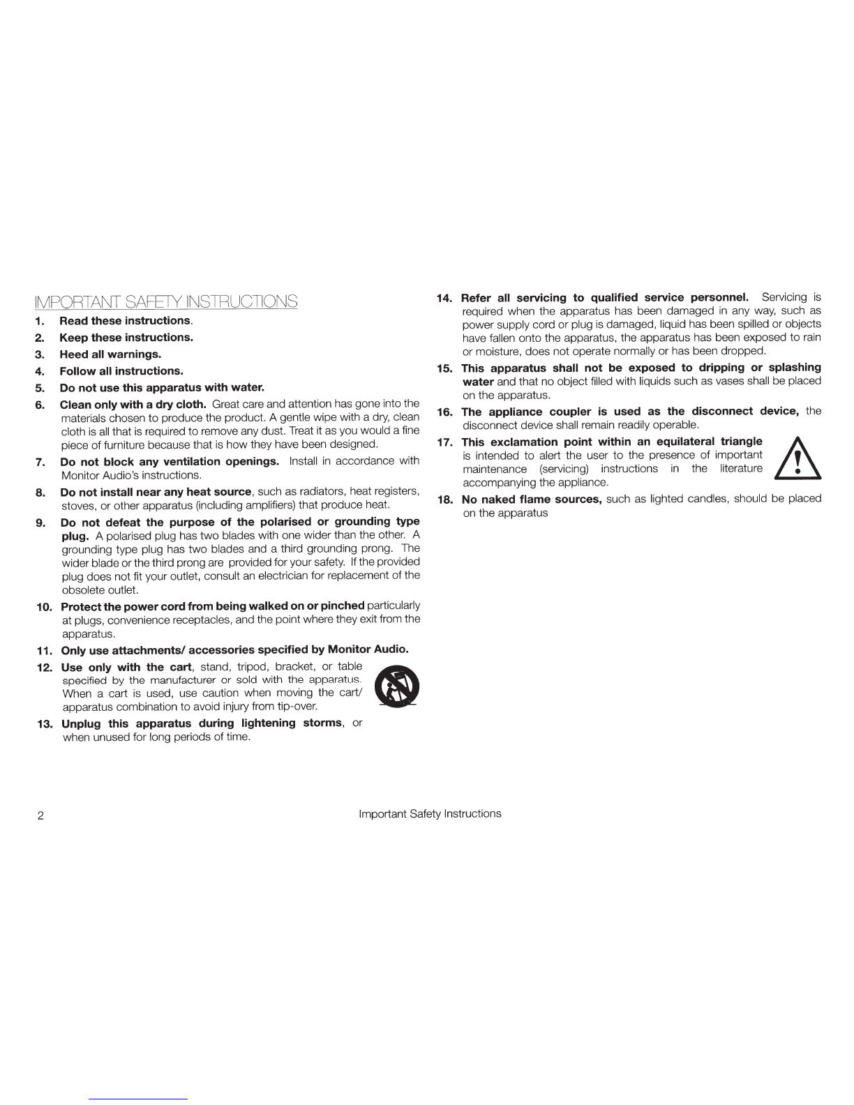 Only use attachments/ accessories specified by Monitor Audio.