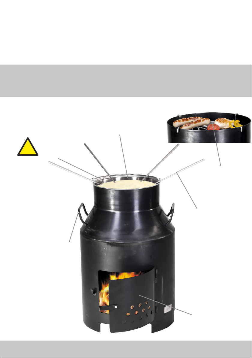 Achtung: Offenes Feuer! Das Gerät darf NUR im Freien betrieben werden, da es in