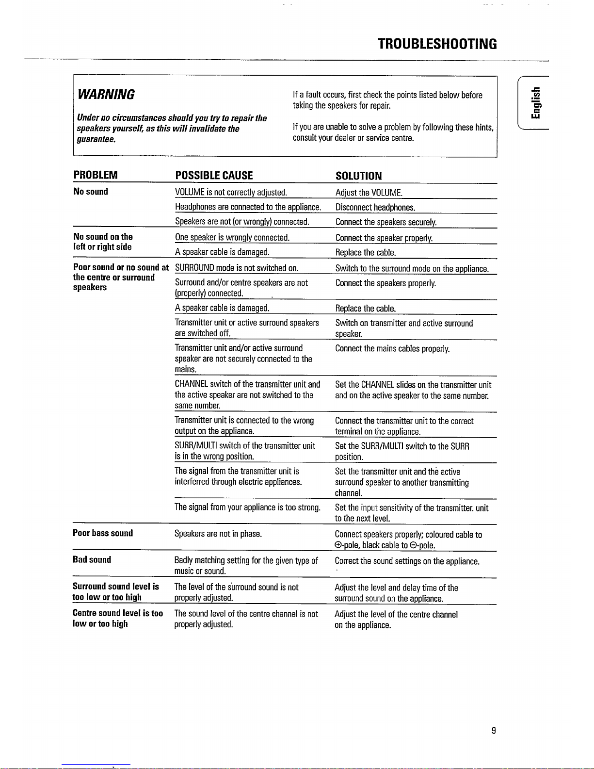 Philips Cordless Stereo Speakers SBC BC8320 Manual de usuario