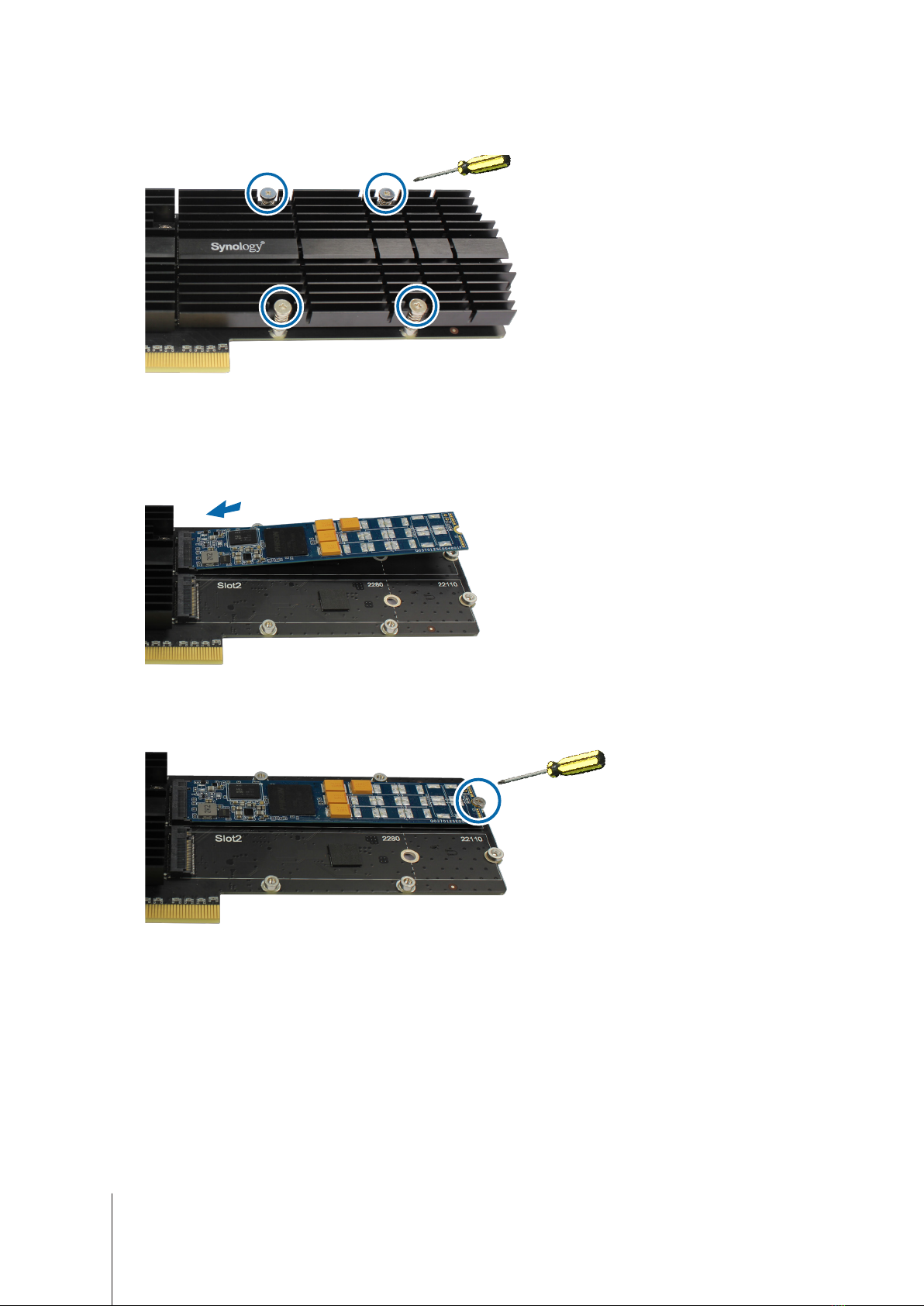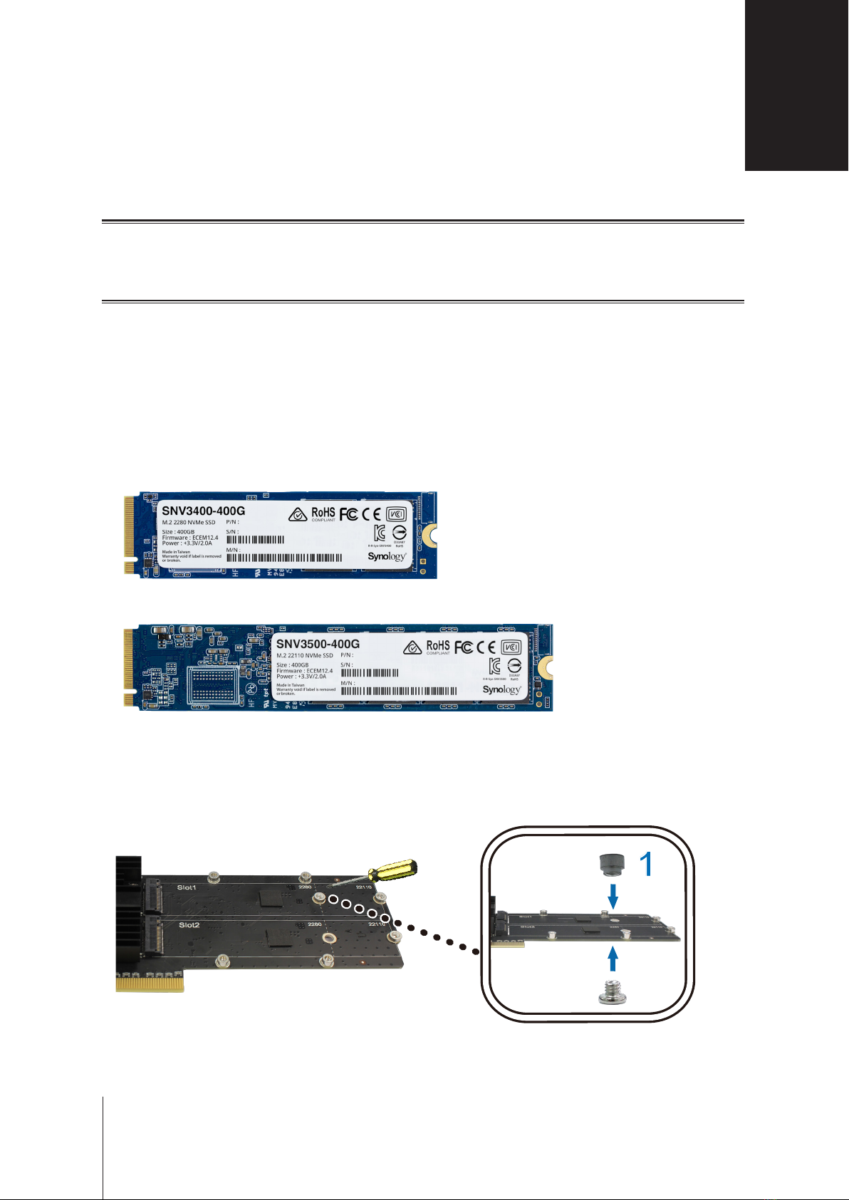 Note: The supported NVMe SSD will vary from dierent Synology NAS, please visit www.synology.com to get more