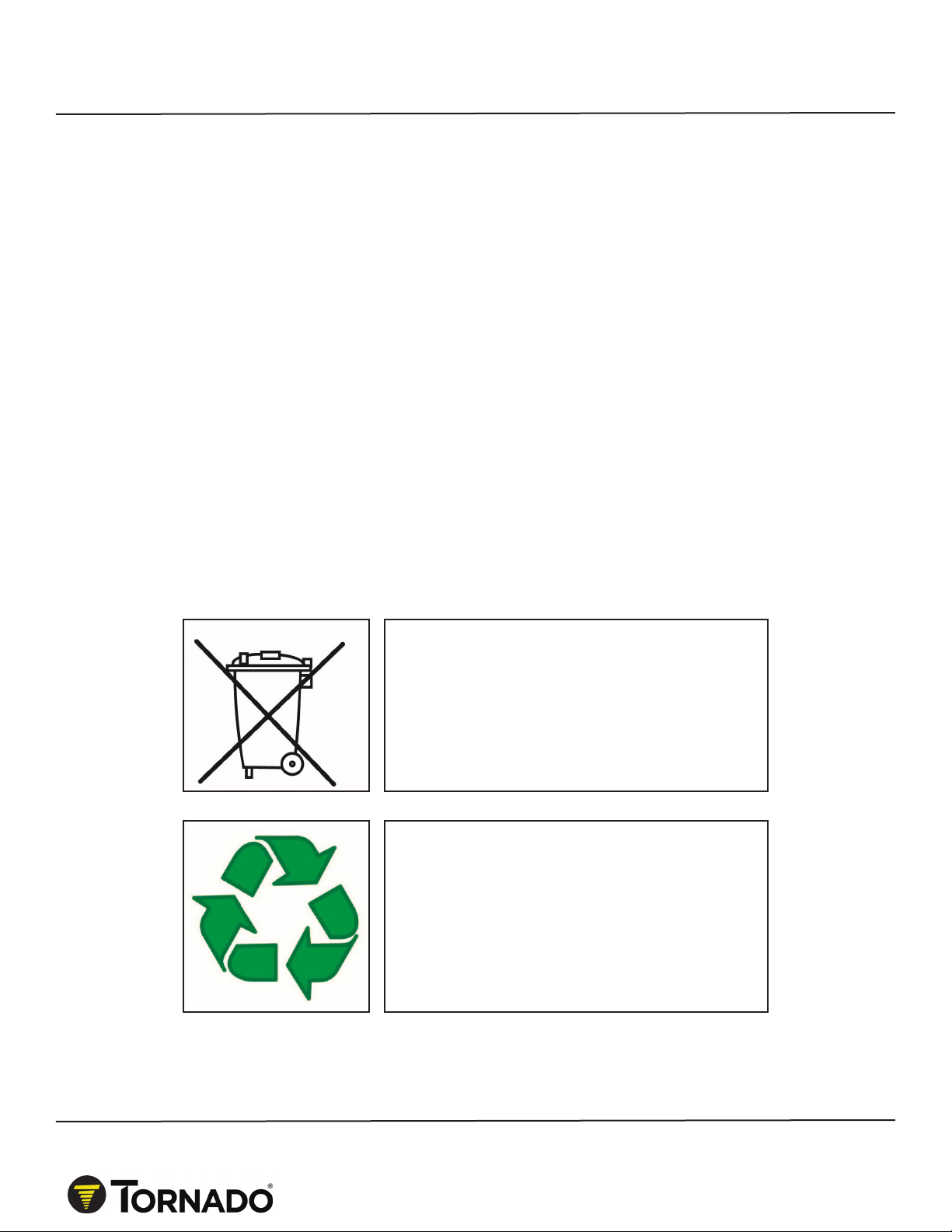 receipt / invoice will act as proof of purchase. Contact Tornado for any warranty inquiries.